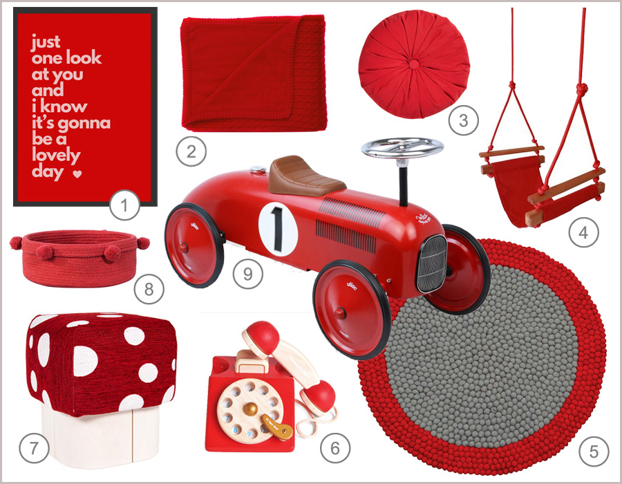 Holy Moly what a year this has been ! All the more reason to make the family home merry and festive by decorating with Santa’s favourite colour. Red is a lively and warm colour appreciated by children as well, so why not add a few red touches in the kid’s room too?