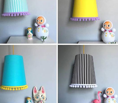 Love Frankie launches 18 new tapered cone lampshades with pom pom trims. Handmade in the UK.