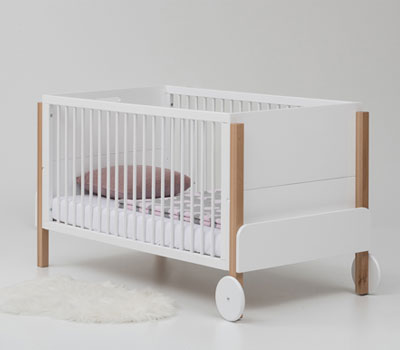 The new Wooothy cot bed in solid wood will grow with your little one throughout their toddler years by converting from a cot to their first junior bed.